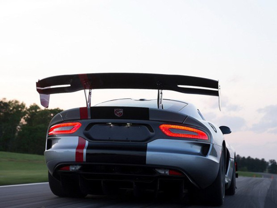 新款蝰蛇ACR车身采用了Extreme Aero套件,该套件包括超大尺寸的可调节后扰流板(1876mm宽)、碳纤维后扩散器以及专属的SRT发动机舱盖等。极致的空气动力学设计可以让新车提供高于蝰蛇TA 2.0三倍以上的下压力。据称,新车达到285km/h时可以产生近1吨的下压力。