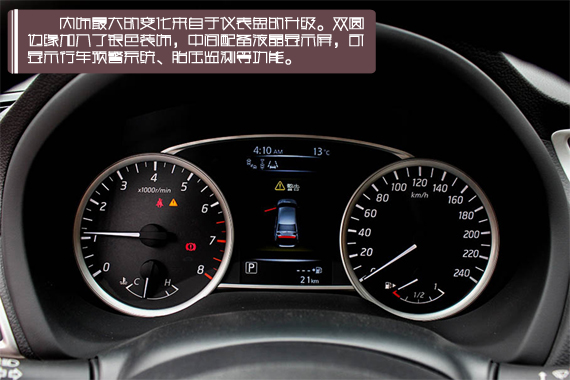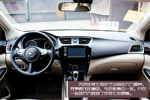 全新轩逸内饰的变化也没有外形那么明显,中控布局延续了现款的设计,但在细节方面做了升级。首先就是中控台上钢琴烤漆的面板,这比以前的木纹饰板相信更会得到消费者的喜爱。其次是方向盘和仪表盘,三辐式方向盘变得更加精致,仪表盘中间配备液晶显示屏,可显示行车预警系统、胎压监测等功能。