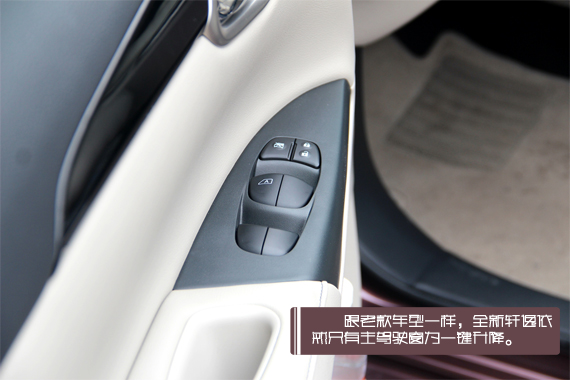 而全新轩逸配置上的最大亮点在于主动安全配置的升级——除了最低配的舒适版外,全系标配VDC车辆动态控制系统。除此之外,新车在舒适性方面也有相当不错的表现,中央扶手区可是配备了前排座椅加热功能哦!不过仅有主驾驶窗为一键升降这点什么时候也该提升提升了。