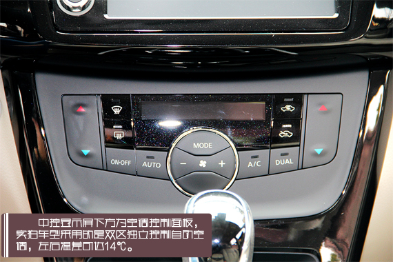 7英寸触摸显示屏配备了苹果Carplay智能互联系统,果粉的iOS设备将与车载多媒体系统无缝结合,使用中控屏和控制键,用户可以轻松、安全的拨打电话、收发信息、使用导航等。我们实拍的顶配车型采用的是双区独立控制自动空调,左右温差可达14℃。