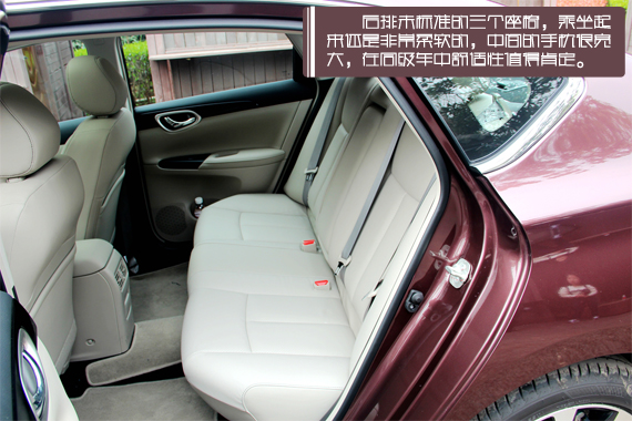 全系轩逸在轴距方面没有变化,所以在乘坐空间上也延续了前款超越同级的特点,说达到中级车的水平一点都不过分。后排未标准的三个座椅,乘坐起来还是非常柔软的,中间的手枕很宽大,在同级车中舒适性值得肯定,天窗的加入也为这款车增加了亮点。