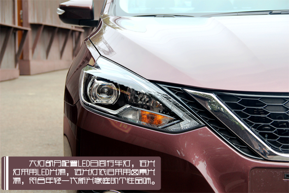 全新轩逸使用了最新的“V-motion”设计语言,家族特征相当明显,和老款相比更加的年轻时尚。“V”型中网取代了老款的横幅式设计,而黑色网状格栅与镀铬饰条的造型也不似蓝鸟的激进,十分契合轩逸家用、稳重的形象定位。相较于现款,全新轩逸的大灯也做了相应的升级,LED日间行车灯,近光灯采用LED光源,远光灯依旧采用卤素光源,符合年轻一代新兴家庭的个性品味,而大灯的外形设计也动感十足,与造型饱满性感的下唇和略微隆起的发动机盖十分般配,运动感杠杠的。